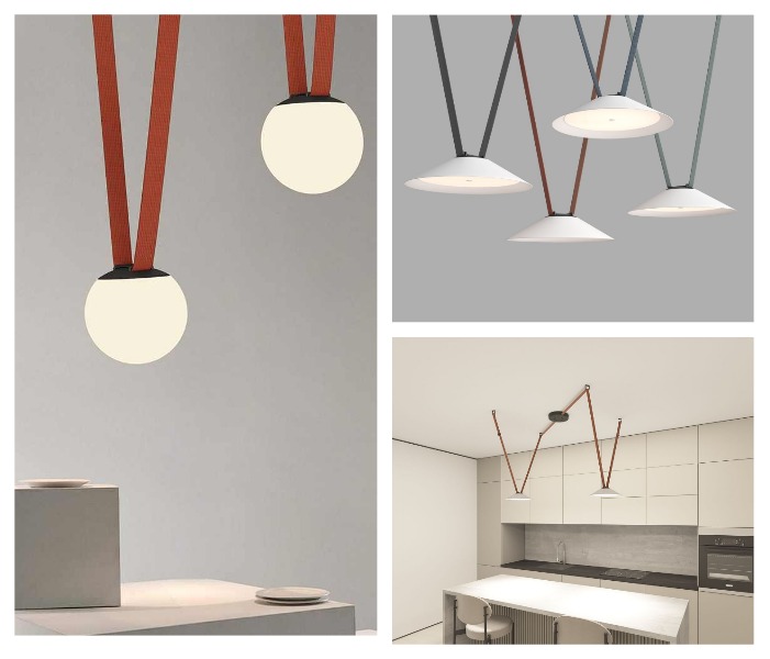 Источники света, подвешенные на длинных кожаных, тканевых или брезентовых ремнях, особенно часто можно видеть в трековых системах. Но теперь они встречаются даже на бра, настольных лампах и люстрах.