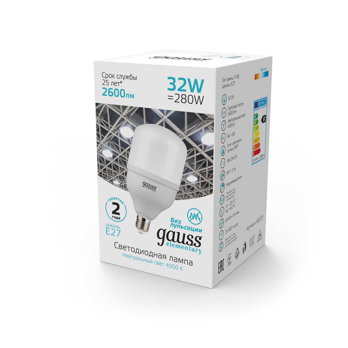 Лампа светодиодная Gauss E27 32W 4000K матовая 63233