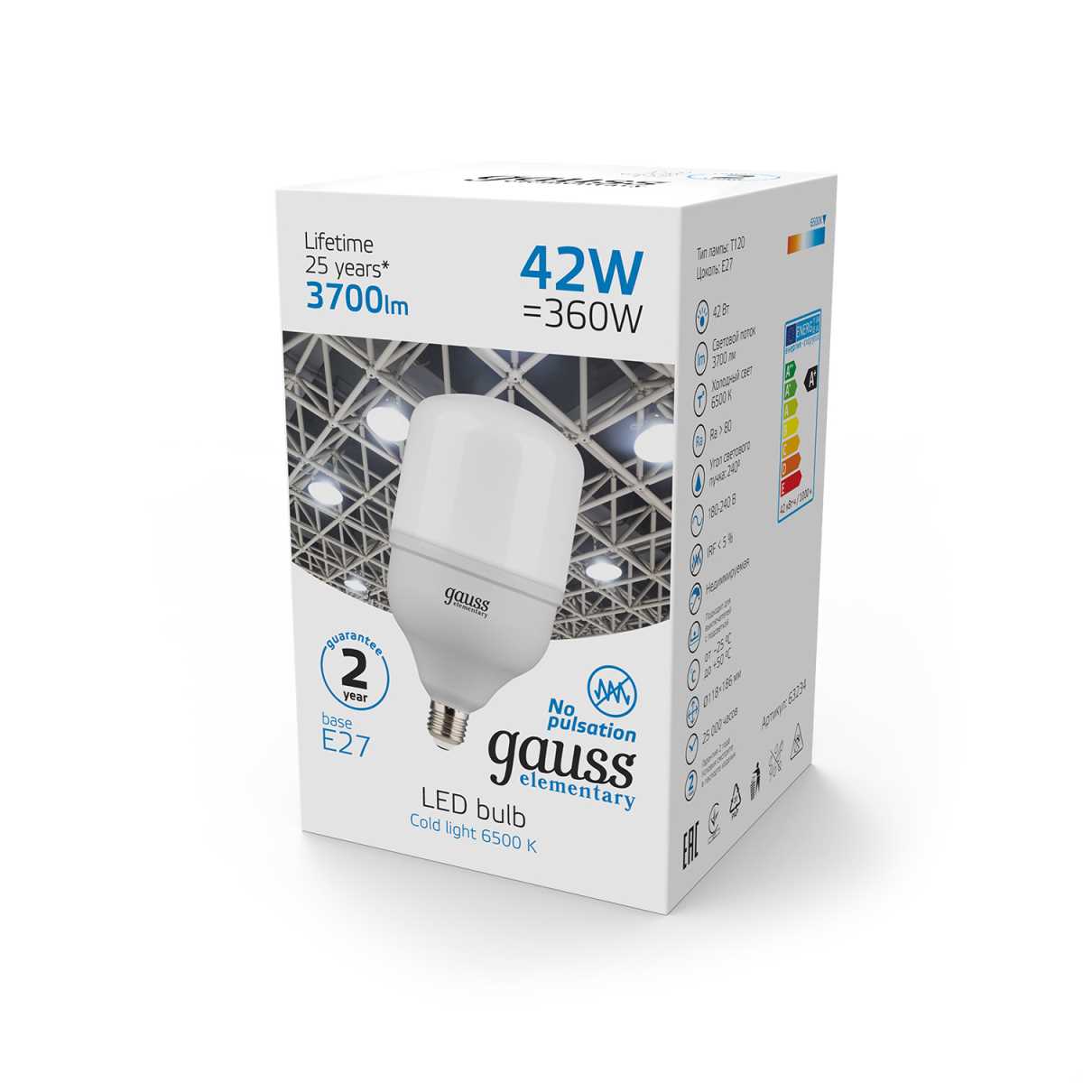 Лампа светодиодная Gauss E27 42W 6500K матовая 63234