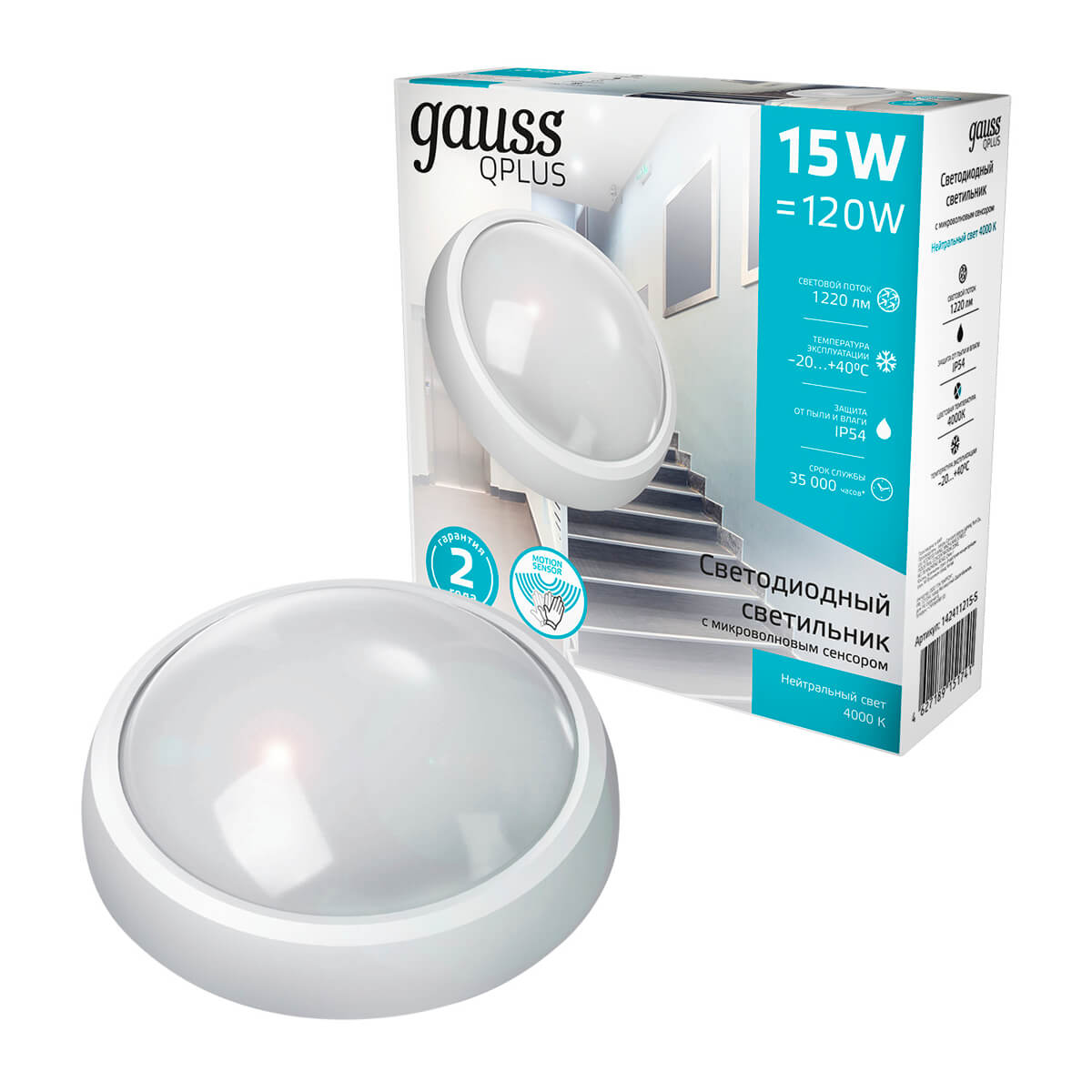 Настенно-потолочный светодиодный светильник Gauss Qplus 142411215-S