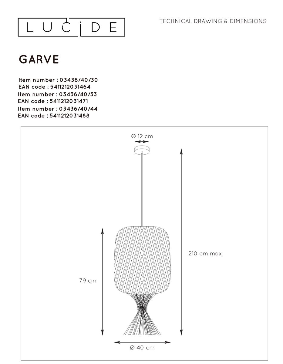 Подвесной светильник Lucide Garve 03436/40/44