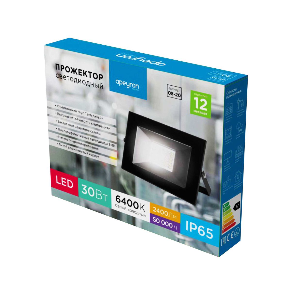Прожектор светодиодный Apeyron 30W 6400K 05-20