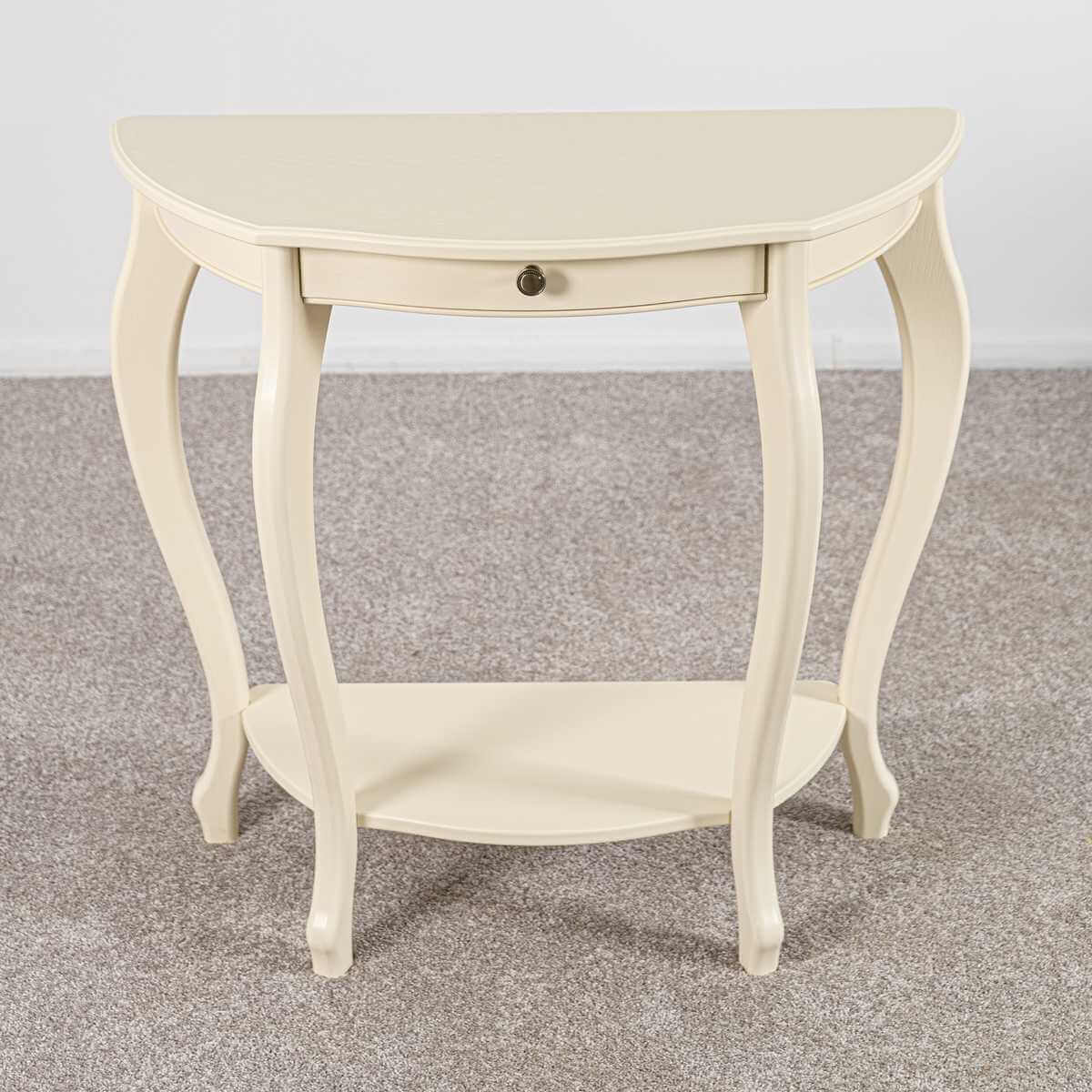 Консоль от бренда Мебелик с артикулом 008526 c основанием из МДФ и полукруглой столешницей из МДФ станет незаменимым дополнением для интерьера спальни в классическом стиле. Российский товар цвета шампань с шириной в 80 см, глубиной в 38 см и высотой 76 см и оборудован ящиками. Конструкция с четырьмя ножками без колес не регулируется по высоте. У модели есть полка. Консоль Мебелик Элегант Л 008526 поставляется по цене 8631 RUB и доставляется в кратчайшие сроки по Москве и всей России. Изучите отзывы пользователей, фото и характеристики и делайте заказ в интернет-магазине Вамсвет.